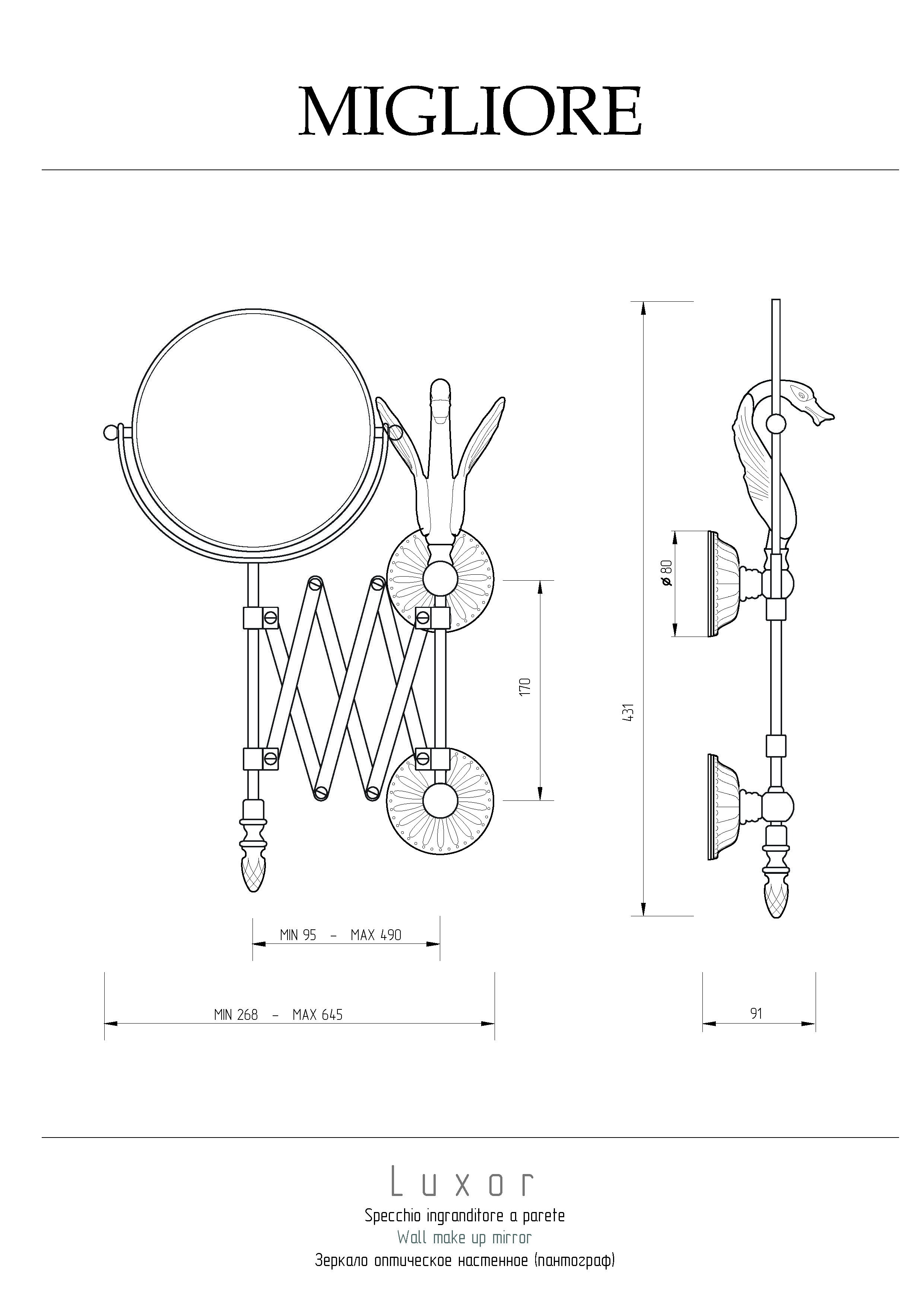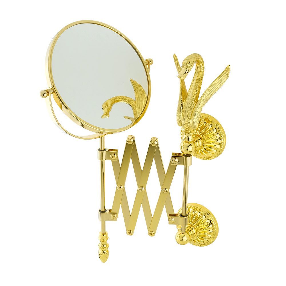 Настенное оптическое зеркало-пантограф коллекции LUXOR бренда MIGLIORE с двумя зеркальными полотнами, одно из которых имеет трехкратное увеличение для удобства нанесения макияжа или проведения уходовых процедур. Данное зеркало станет достойным украшением вашей ванной комнаты. Изделие выполнено из высококачественной латуни и имеет гальваническое покрытие золотом 24 карата. Внимание: золотое покрытие очень деликатное и для ухода рекомендуется использовать чистящее средство бренда MIGLIORE для смесителей и аксессуаров с деликатными покрытиями бронза, золото, медь и протирать мягкой ветошью.