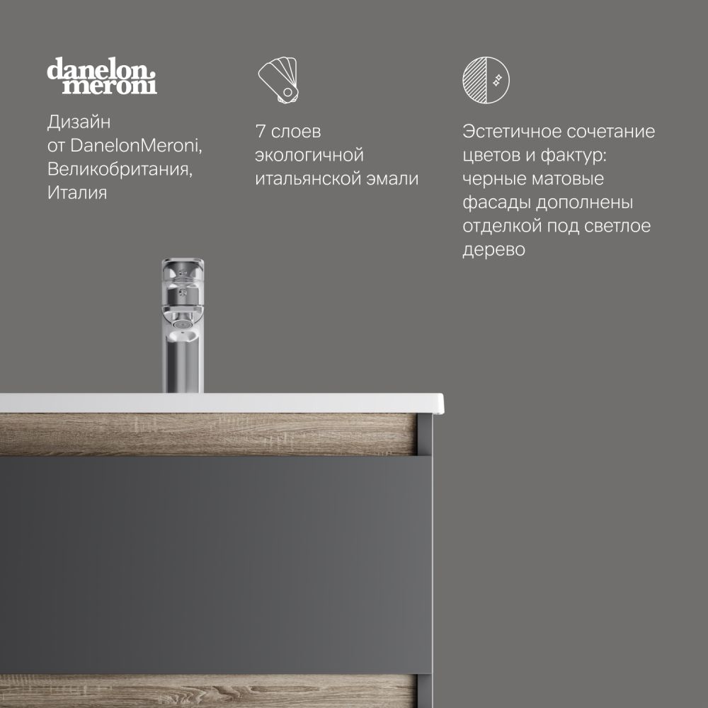 Впервые на рынке – дизайнерская коллекция сантехники которую может позволит себе каждый. Самое эстетичное сочетание цветов и фактур от дизайн-бюро Danelon Meroni (Великобритания & Италия): черные матовые фасады дополнены отделкой с фактурой под темное дерево.