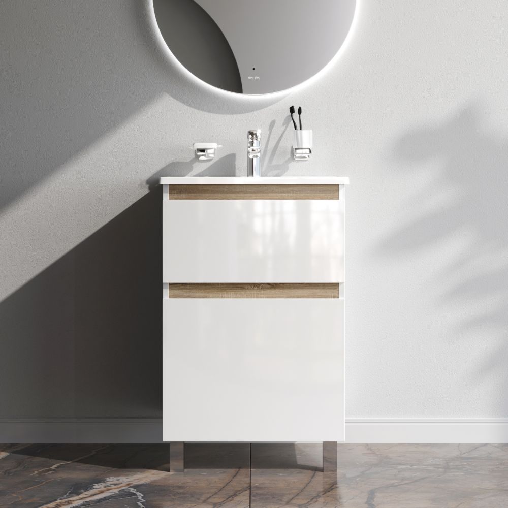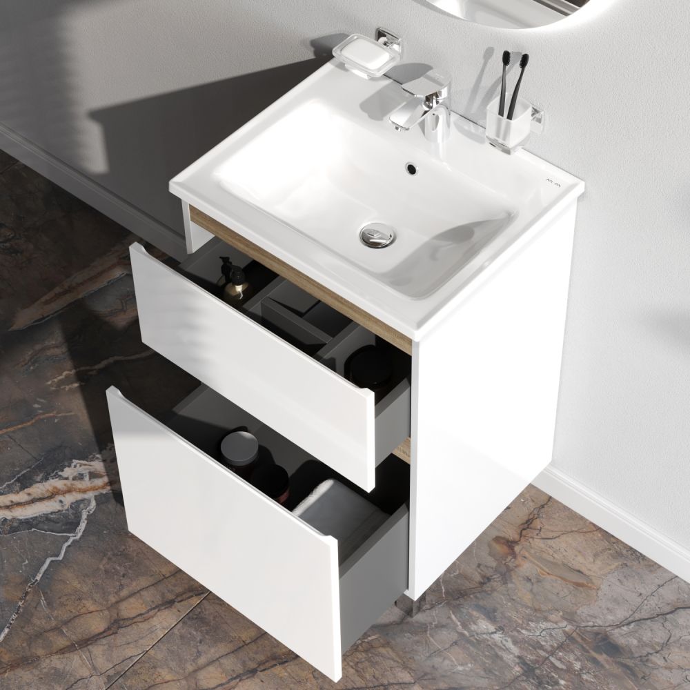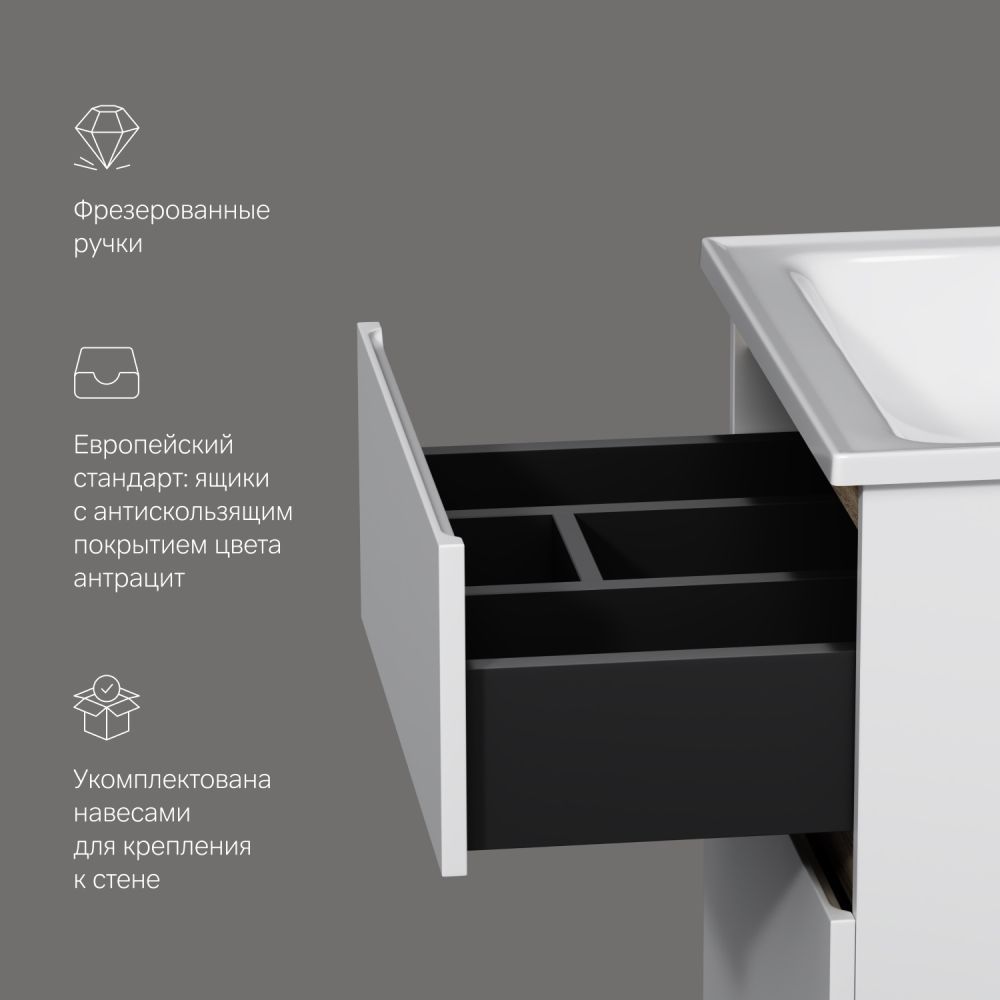 цвете Anthracite и имеет противоскользящее покрытие. Встроенная керамическая раковина белоснежного цвета оснащена специальным бортиком для защиты от пролива воды за мебель.