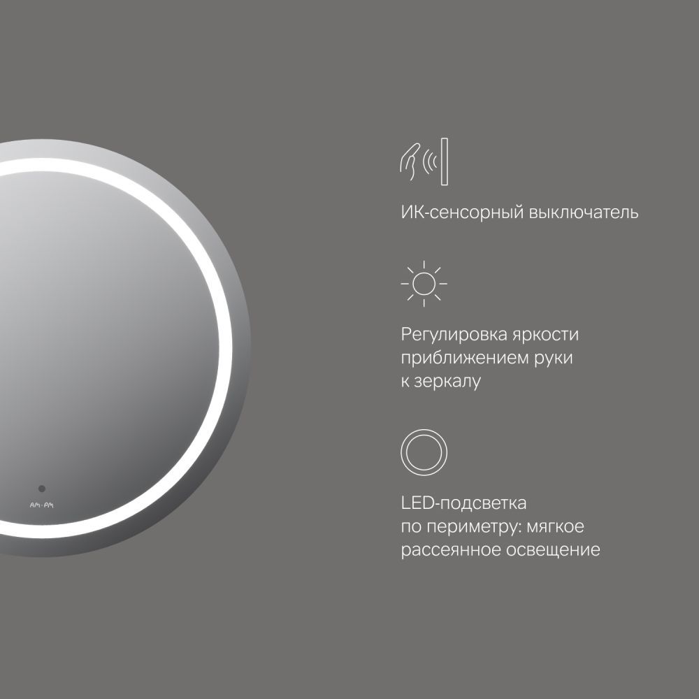 Яркая контурная LED-подсветка обеспечивает отличное рассеянное освещение и отсутствие теней. Срок службы светодиодов составляет более 30 000 часов. Сенсорный выключатель Touchless – никаких отпечатков на зеркальном полотне! Свет включается легким взмахом руки функция диммирования позволяет регулировать яркость жестом. Гарантия 3 года.
