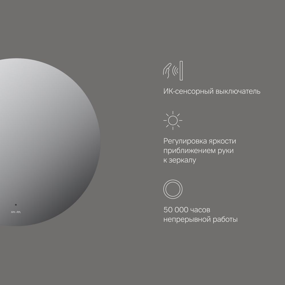 Стильное решение для ванной комнаты. Визуальный эффект "парящего" зеркала добавляет легкости интерьеру. Подсветка естественного дневного цвета не искажает отражение.