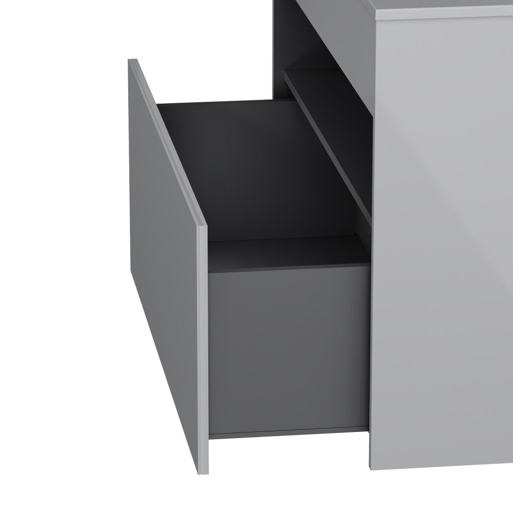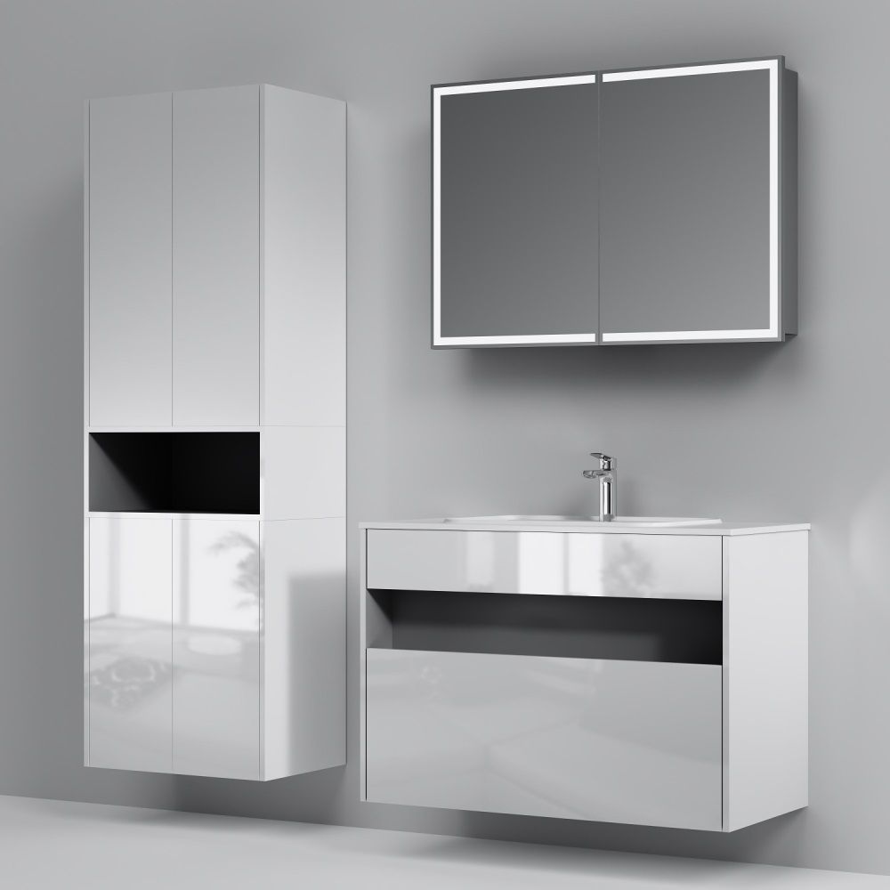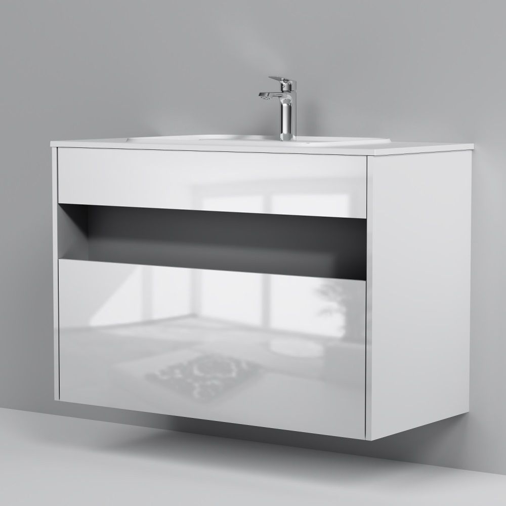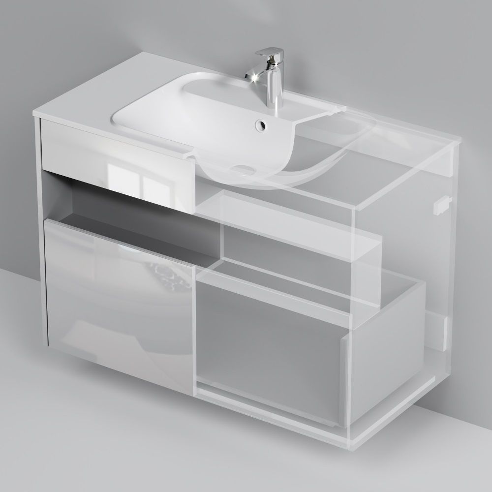 Удобный выдвижной ящик и вместительная открытая ниша позволяют хранить все необходимые средства под рукой. Невероятно мягкое открытие и закрытие благодаря направляющим скрытого монтажа с системой soft close.