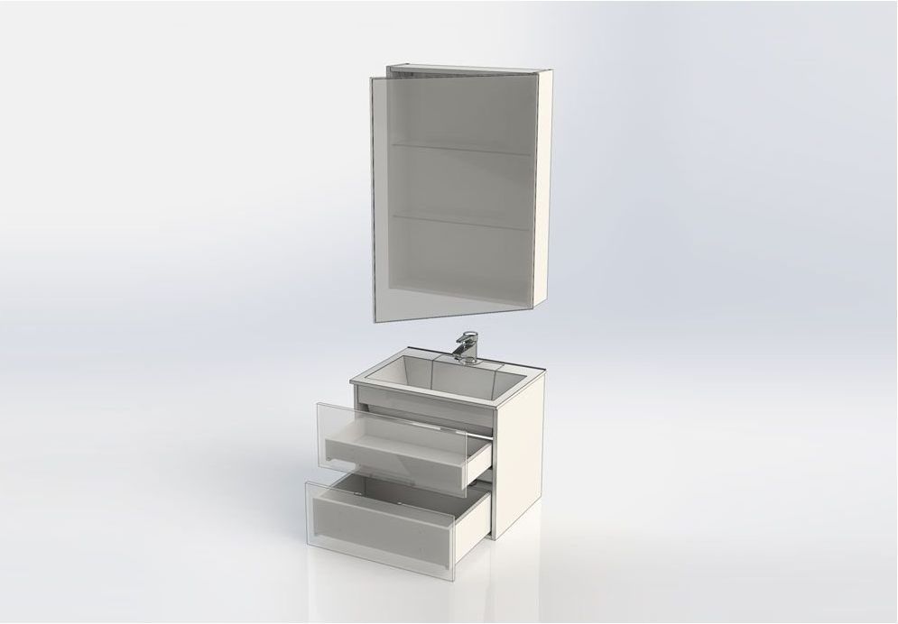 Мебельный гарнитур Акванет Алвита придаст интерьеру ванной комнаты нотку особого очарования и уникальности, благодаря своей нестандартной красивой отделке. Покрытие имеет высокие эксплуатационные характеристики, в частности влагонепроницаемость, прочность и простоту в уходе. Современный дизайн демонстрирует аккуратный минимализм геометрически четких форм, где основная идея подчинена максимальной функциональности. Вместительная тумба с верхним и нижним выдвижными ящиками и зеркало-шкафчик с полками за распашной дверцей создают дополнительное пространство, где будут надежно скрыты от влаги банные принадлежности, а все необходимое при умывании и принятии ванны теперь будет у вас под рукой. Ящики тумбы закрываются легко и бесшумно, благодаря механизму доводчика. Раковина «Фортуна» имеет уникальную конструкцию слива: вместо привычного расположения по центру, он находится в скрытом отсеке под съемной крышкой. Смещение слива и сифона к стене, в сторону канализационного отвода, избавляет от необходимости менять устройство верхнего ящика тумбы и делать в нем выемку. Теперь он свободно передвигается под раковиной и имеет большую вместимость. При желании гарнитур можно укомплектовать навесным пеналом в том же стиле, расширив зону хранения ванной комнаты.