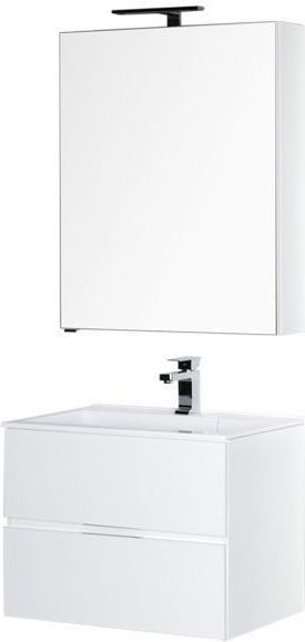 Мебельный гарнитур Акванет Алвита придаст интерьеру ванной комнаты нотку особого очарования и уникальности, благодаря своей нестандартной красивой отделке. Покрытие имеет высокие эксплуатационные характеристики, в частности влагонепроницаемость, прочность и простоту в уходе. Современный дизайн демонстрирует аккуратный минимализм геометрически четких форм, где основная идея подчинена максимальной функциональности. Вместительная тумба с верхним и нижним выдвижными ящиками и зеркало-шкафчик с полками за распашной дверцей создают дополнительное пространство, где будут надежно скрыты от влаги банные принадлежности, а все необходимое при умывании и принятии ванны теперь будет у вас под рукой. Ящики тумбы закрываются легко и бесшумно, благодаря механизму доводчика. Раковина «Фортуна» имеет уникальную конструкцию слива: вместо привычного расположения по центру, он находится в скрытом отсеке под съемной крышкой. Смещение слива и сифона к стене, в сторону канализационного отвода, избавляет от необходимости менять устройство верхнего ящика тумбы и делать в нем выемку. Теперь он свободно передвигается под раковиной и имеет большую вместимость. При желании гарнитур можно укомплектовать навесным пеналом в том же стиле, расширив зону хранения ванной комнаты.