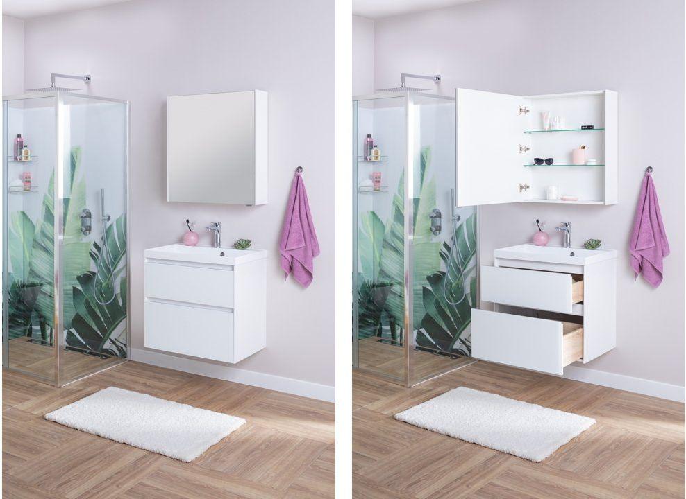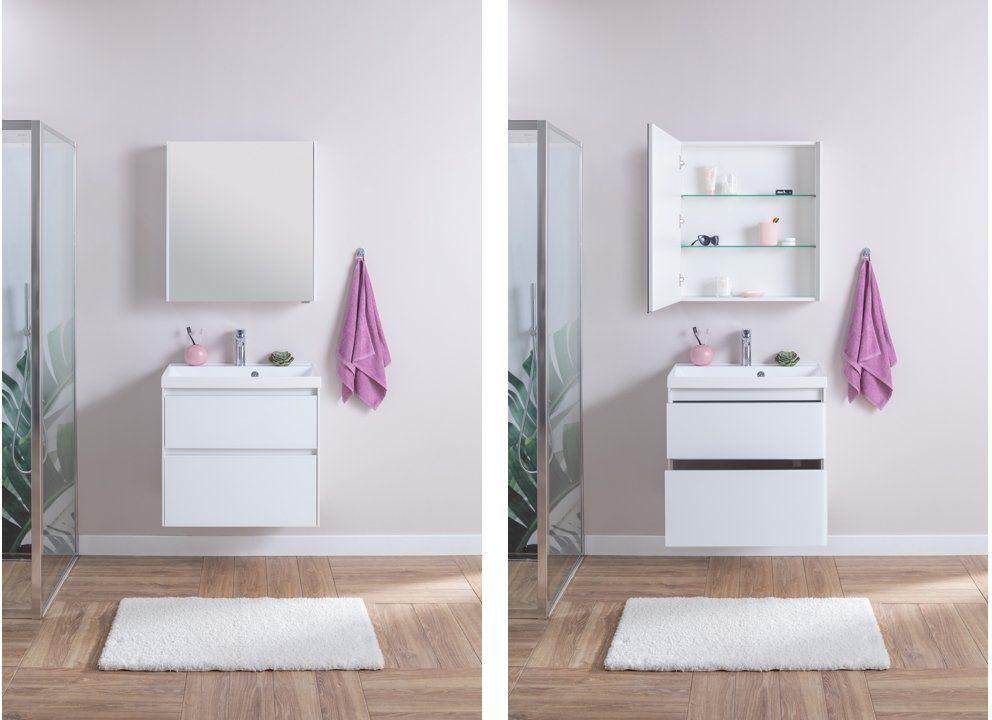 Мебель для ванной Aquanet Гласс 70 белого цвета состоит из тумбы "Гласс" шириной 70 см с раковиной "Орлеан" и зеркала "Латина" шириной 70 см. Тумба смотрится эффектно благодаря сочетанию белого матового стекла на фасаде верхнего выдвижного ящика с белоснежными глянцевыми поверхностями корпуса, выполненного из МДФ. Такое покрытие, к тому же, надежно защищает мебель от воздействия воды. «Изюминку» во внешний вид вносит внутренняя часть выдвижных ящиков, выполненная в цвете «дуб сонома». Древесная фактура вносит свежесть и живописность в дизайн всего изделия.
