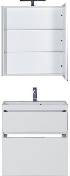 Мебельный комплект Акванет Латина — новое предложение для тех, кто решил создать ванную комнату в стиле «модерн». Комплект сравнительно компактен, в то же время вместительные отделения двух выдвижных ящиков тумбы сокроют в себе белье и полотенца, а зеркало-шкаф позволит хранить необходимые для ежедневной гигиены принадлежности непосредственно «под рукой». Ящики новых коллекций мебели Aquanet снабжены доводчиками плавного закрывания. Среди достоинств комплекта также хромированные ручки ящиков и глубокая прямоугольная раковина из литьевого мрамора, что очень актуально для современных интерьеров. Белое глянцевое покрытие «Латины» соответствует представлениям о чистоте и здоровье и гармонирует с белизной ванны, кабины или душевого уголка в ванной комнате. Мягкое, в то же время достаточное по силе освещение создают экономичные внешние светильники.