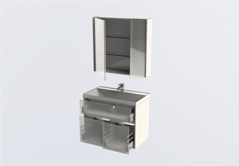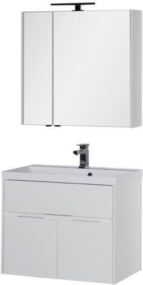 Мебельный комплект Акванет Латина — новое предложение для тех, кто решил создать ванную комнату в стиле «модерн». Вместительные отделения трех выдвижных ящиков тумбы сокроют в себе белье и полотенца, а зеркало-шкаф позволит хранить необходимые для ежедневной гигиены принадлежности непосредственно «под рукой». Ящики новых коллекций мебели Aquanet снабжены доводчиками плавного закрывания. Среди достоинств комплекта также хромированные ручки ящиков и глубокая прямоугольная раковина из литьевого мрамора, что очень актуально для современных интерьеров. Белое глянцевое покрытие «Латины» соответствует представлениям о чистоте и здоровье и гармонирует с белизной ванны, кабины или душевого уголка в ванной комнате. Мягкое, в то же время достаточное по силе освещение создают экономичные внешние светильники.