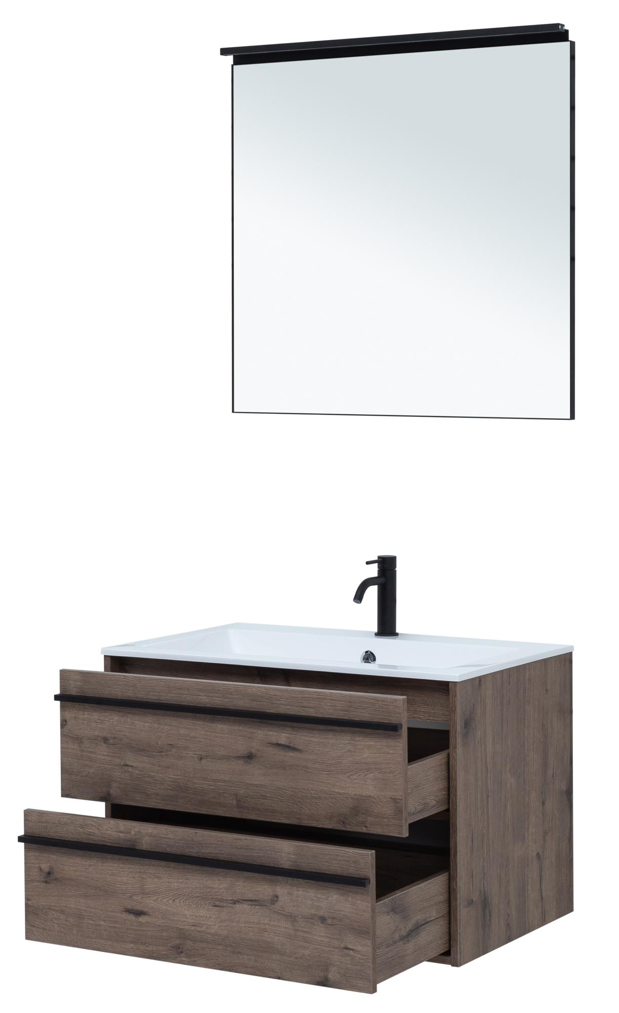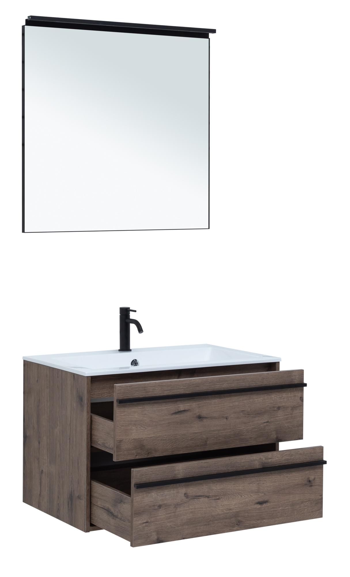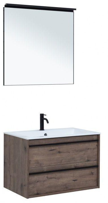 Мебель для ванной Aquanet Lino 80 в цвете "дуб веллингтон" - яркий пример мебели в эко-стиле. Яркая, приятная глазу цветовая гамма плюс текстурная поверхность, максимально приближенная по тактильным ощущениям к натуральной древесной поверхности, является визитной карточкой коллекции. В комплекте тумба с очень удобной зоной хранения: два выдвижных ящика, оборудованных доводчиками, словно утоплены внутрь корпуса. Тонкие изящные ручки во всю ширину ящиков. Именно они находятся в одной плоскости с боковыми стенками. Выглядит стильно. К тому же, безопасно, так как нет выступающих деталей. Кстати, ручки отечественного производства. Сделаны из алюминия, чтобы исключить возможность коррозии, по заказу Aquanet специально для этой коллекции. Сверху на них нанесено эмалевое покрытие. Корпус и фасады тумбы шириной 60 см – из влагостойкого ЛДСП. Сверху установлена раковина «Электра» из литьевого мрамора. У нее максимально глубокая и объемная чаша, но все внутренние детали скруглены. В комплекте зеркало, выполненное в современном дизайне, простое по форме и качественное по исполнению. ВНИМАНИЕ! Светильник в комплект не входит. Понравившийся вариант можно выбрать из ассортимента интернет-магазина и добавить в корзину заказа.
