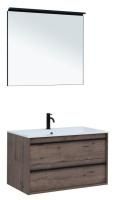 Мебель для ванной Aquanet Lino 90 в цвете "дуб веллингтон" - яркий пример мебели в эко-стиле. Яркая, приятная глазу цветовая гамма плюс текстурная поверхность, максимально приближенная по тактильным ощущениям к натуральной древесной поверхности, является визитной карточкой коллекции. В комплекте тумба с очень удобной зоной хранения: два выдвижных ящика, оборудованных доводчиками, словно утоплены внутрь корпуса. Тонкие изящные ручки во всю ширину ящиков. Именно они находятся в одной плоскости с боковыми стенками. Выглядит стильно. К тому же, безопасно, так как нет выступающих деталей. Кстати, ручки отечественного производства. Сделаны из алюминия, чтобы исключить возможность коррозии, по заказу Aquanet специально для этой коллекции. Сверху на них нанесено эмалевое покрытие. Корпус и фасады тумбы шириной 60 см – из влагостойкого ЛДСП. Сверху установлена раковина «Электра» из литьевого мрамора. У нее максимально глубокая и объемная чаша, но все внутренние детали скруглены. В комплекте зеркало, выполненное в современном дизайне, простое по форме и качественное по исполнению. ВНИМАНИЕ! Светильник в комплект не входит. Понравившийся вариант можно выбрать из ассортимента интернет-магазина и добавить в корзину заказа.