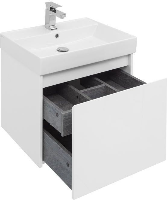 Мебель для ванной Aquanet Nova Lite 60 белоснежного цвета из влагостойкой ламинированной древесно-стружечной плиты выглядит нарядно. Подвесной монтаж придает визуальную легкость тумбе шириной 60 см. Тумба оборудована одним большим ящиком, внутри которого предусмотрен маленький с выемкой для установки сифона и разделителями, где удобно хранить необходимые в ванной комнате мелочи. Фасады выполнены с декоративной интегрированной ручкой, не имеющей острых краев и внутренних углов, что обеспечивает удобство в эксплуатации и легкий уход за мебелью. Ящики комплектуются направляющими немецкого производства Hettich Quadro, оснащенными доводчиками. Неглубокая и стильная керамическая раковина «Латина» идеально подходит к тумбе. Комплект дополняет зеркало с LED-подсветкой по периметру.
