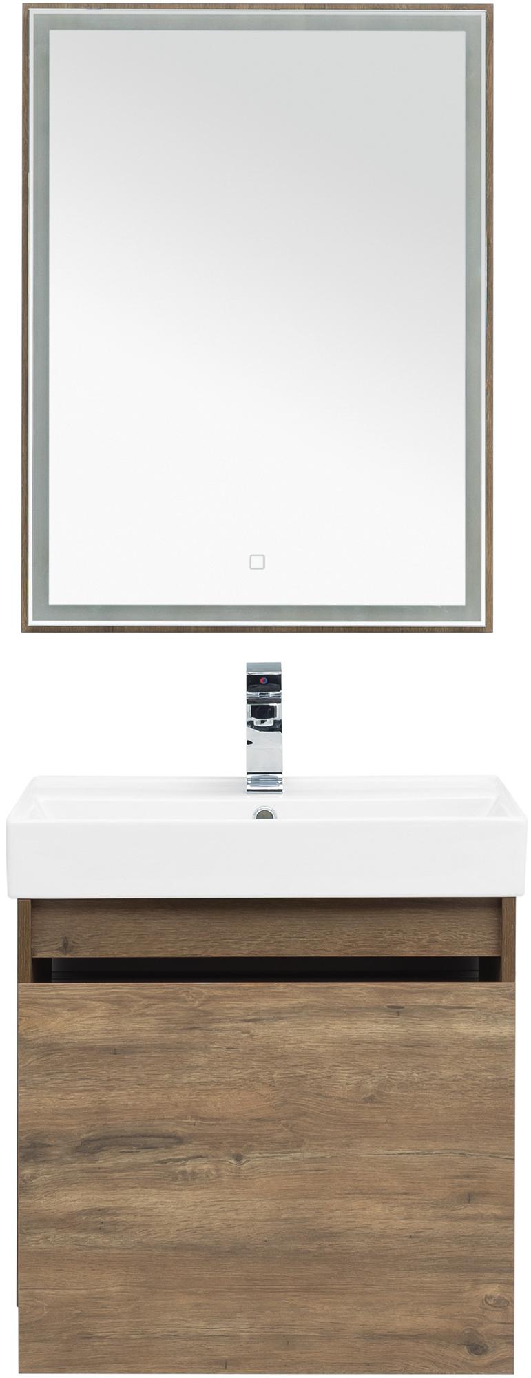 Мебель для ванной Aquanet Nova Lite 60 из влагостойкой ламинированной древесно-стружечной плиты в изысканном цвете «дуб рустикальный» имеет достойный вид. Фактура натурального дерева выглядит благородно, а подвесной монтаж придает визуальную легкость тумбе шириной 60 см. Она оборудована одним ящиком, при открывании которого обнаруживается еще один небольшой для мелочей. Фасад выполнен с декоративной интегрированной ручкой, не имеющей острых краев и внутренних углов, что обеспечивает удобство в эксплуатации и легкий уход за мебелью. Ящики комплектуются направляющими немецкого производства Hettich Quadro, оснащенными доводчиками. Неглубокая и стильная керамическая раковина «Латина» идеально подходит к тумбе. В комплекте с тумбой идет зеркало с LED-подсветкой по периметру.