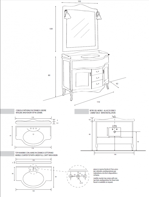 Тип: база в комплекте с раковиной и зеркалом