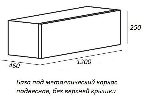 Особенности: База под металлический каркас подвесная с одним выкатным ящиком c механизмами PUSH (BLUM) и функцией плавного закрывания, без верхней крышки; две открытые полки