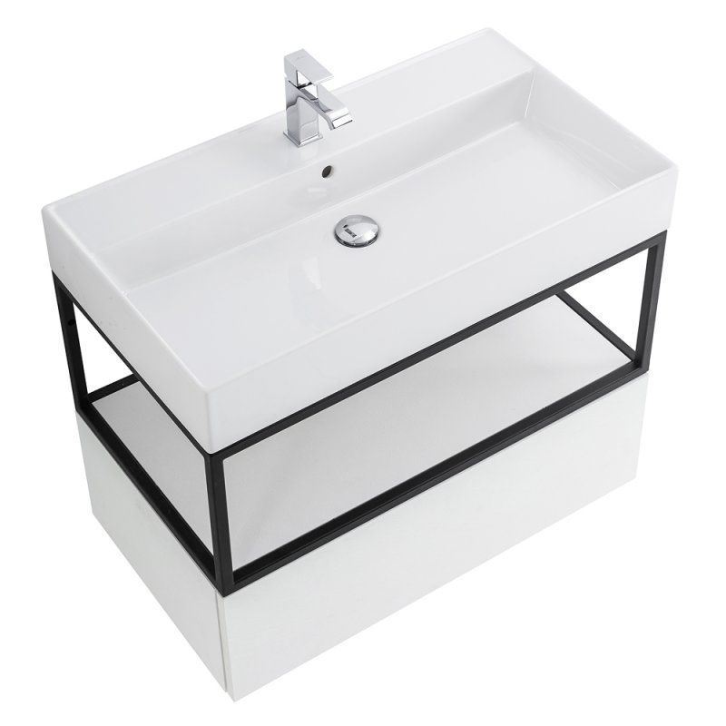 Особенности: База под металлический каркас подвесная с одним выкатным ящиком c механизмами PUSH (BLUM) и функцией плавного закрывания, без верхней крышки; две открытые полки