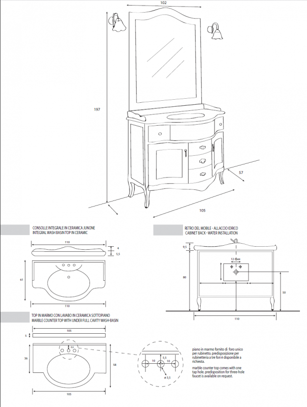 Дополнительная информация: возможна комплектация колонной серии MILADY в отделках Noce, Bianco Laccoto Opaco