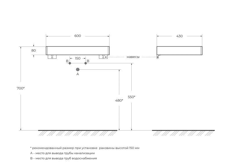 Тип: консоль с накладной раковиной