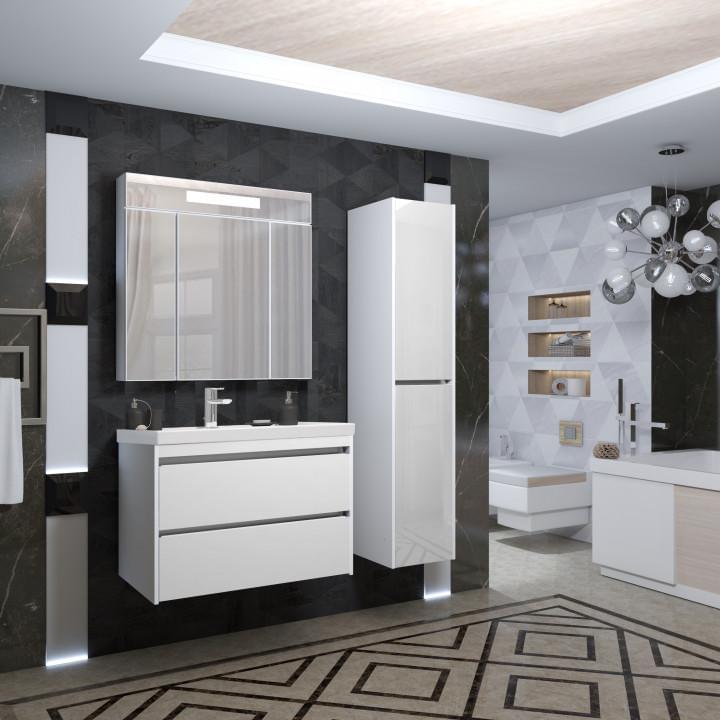 Коллекция Opadiris Фреш имеет фасады из закаленного белого стекла, оснащена ящиками с доводчиками Hettich. Раковина керамическая, турецкого производства.
