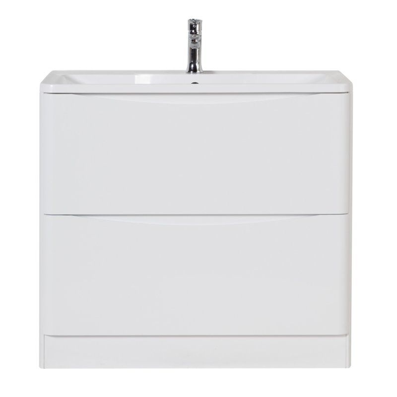 ;C врезными (фрезерованными) ручками в плоскости фасада; раковина сифоном не комплектуется