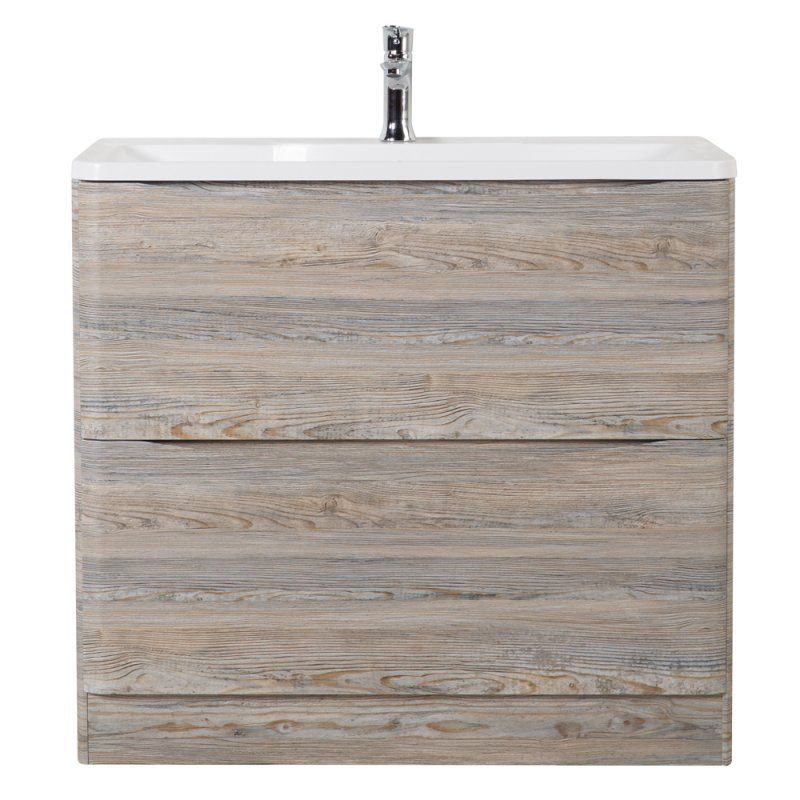 ;C врезными (фрезерованными) ручками в плоскости фасада; раковина сифоном не комплектуется