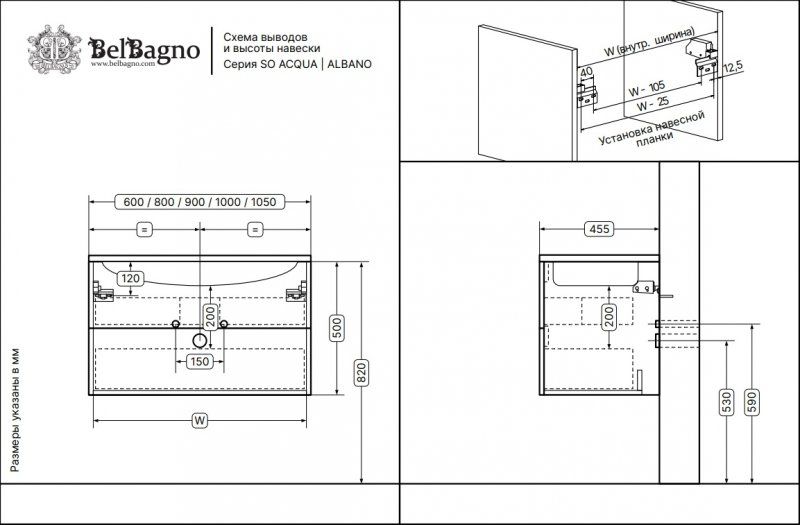 ;C врезными (фрезерованными) ручками в плоскости фасада; раковина сифоном не комплектуется