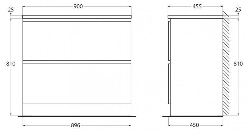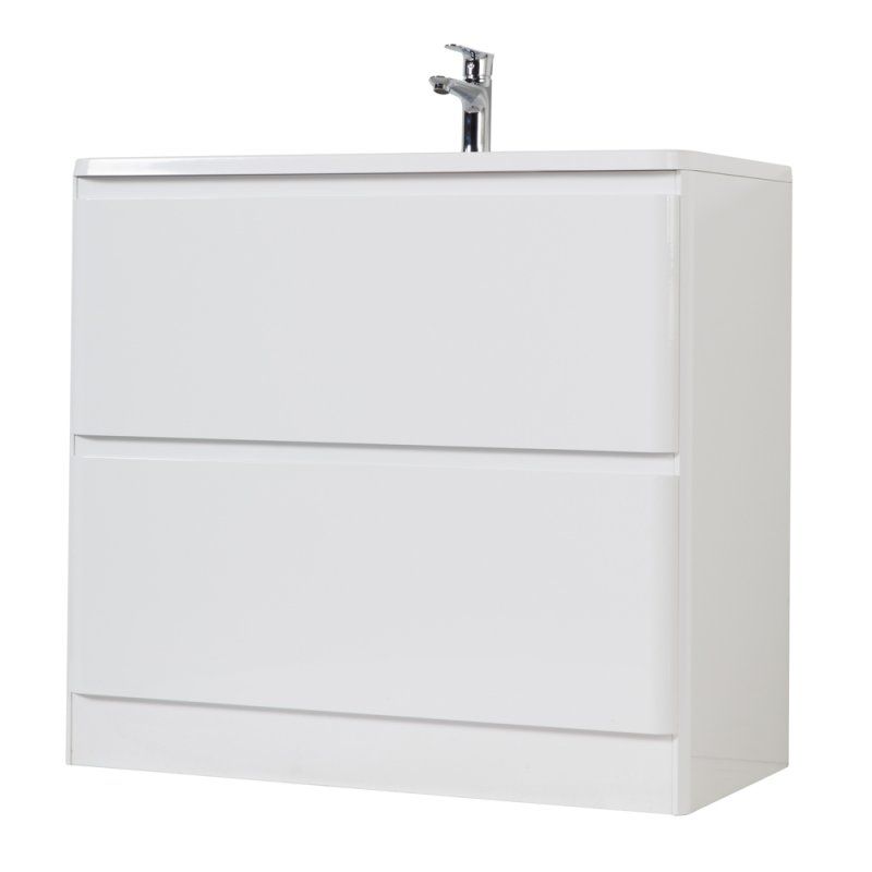 ;C врезными (фрезерованными) ручками в плоскости фасада; раковина сифоном не комплектуется