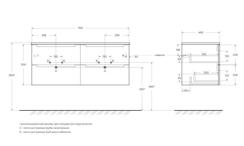 ВНИМАНИЕ: для комплекта со столешницей необходимо заказать две базы
