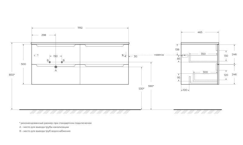 ВНИМАНИЕ: для комплекта со столешницей необходимо заказать две базы