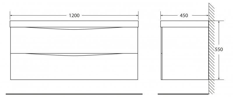 Дополнительная информация: база оснащена доводчиками, ручки скрыты в плоскости фасада, раковина сифоном не комплектуется
