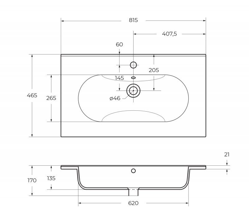 С фрезерованными ручками по всей длине фасада; раковина сифоном не комплектуется