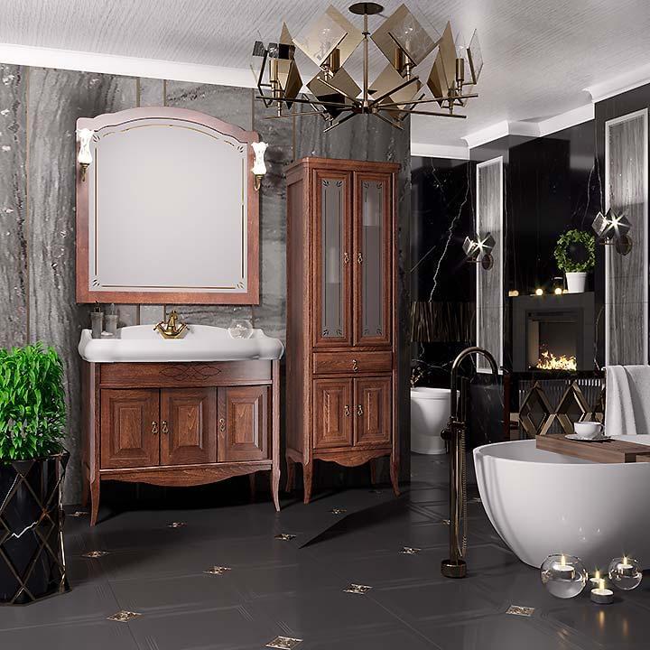 Коллекция ЛОРЕНЦО выполнена в лучших традициях итальянского классического дизайна. Для изготовления мебели из коллекции ЛОРЕНЦО используются материалы из массива бука. Отличительными особенностями коллекции являются изящный фасад с фрезеровкой и зеркало с лазерной гравировкой. Тумба комплектуется керамической раковиной или раковиной из литьевого мрамора. Коллекция ЛОРЕНЦО производится в трех размерах — 60 см, 80 см и 100 см и дополняется изящными пеналами на гнутых ножках. Мебель оснащена механизмами плавного закрывания Hettich (Германия).