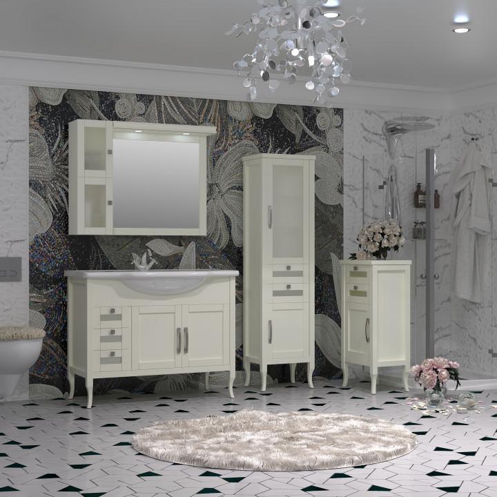 Коллекция МИРАЖ сочетает в себе элементы неоклассического стиля и современной итальянской классики. Особую уникальность мебели из коллекции МИРАЖ придают варианты отделки светлый орех и слоновая кость, а также оригинальные ручки. Модельный ряд коллекции МИРАЖ выполнен в двух вариантах — 100 см и 120 см, а также снабжен оригинальными дополнительными решениями для хранения: напольные комод, одностворчатый и двустворчатый пеналы, зеркала с дополнительными навесными шкафами. Створки фасадов оснащены петлями плавного закрывания.
