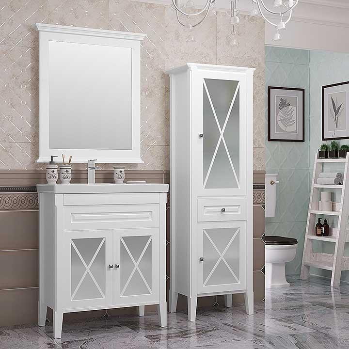 Коллекция мебели для ванной комнаты ПАЛЕРМО выполнена в традиционном американском стиле. Коллекцию ПАЛЕРМО отличают простые линии и совершенный дизайн. Фасадные части мебели ПАЛЕРМО выполнены из массива бука, комплекты мебели предлагаются в трех размерах 50 см, 80 см и 90 см. Мебель оснащена глубокими керамическими раковинами и механизмами плавного закрывания Hettich (Германия). Коллекцию прекрасно дополняет высокий напольный пенал с дверцами с матовым стеклом и выдвижным ящиком.