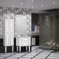 Тумба накрыта ультратонкой керамической раковиной, а выдвижные ящики оборудованы механизмом с плавным закрыванием.