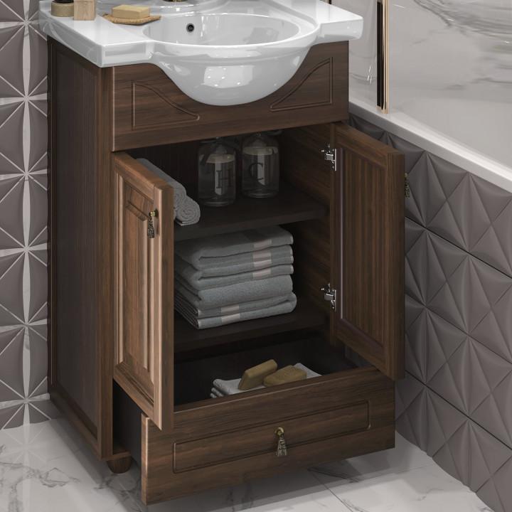 Коллекция мебели ТИБЕТ представляет собой великолепное сочетание традиционной классики и современного взгляда на ванную комнату. Тумбы ТИБЕТ отличаются своим многообразием вариантов фасадов. Для отделок орех антикварный, слоновая кость и белый матовый модели могут быть доступны с дверцами с художественным стеклом или декоративной решеткой. Также тумбы могут быть выполнены с объемными филёнчатыми фасадами в отделках орех антикварный и ясень белое серебро. Дополнительно в коллекцию входит напольный пенал. Для отделки орех антикварный, пенал выполнен с матовым стеклом (верхняя дверца). Нижний фасад предлагается с декоративной решеткой и бельевой корзиной. Пеналы в цветах слоновая кость и белый матовый изготавливаются с художественным стеклом (верхняя дверца пенала), нижняя дверца предусмотрена с «глухим» фасадом с бельевой корзиной.