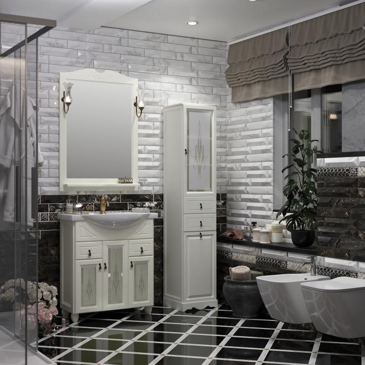 Коллекция мебели для ванной комнаты Тибет представляет собой великолепное сочетание традиционной классики и современного взгляда на ванную комнату. Тумба Тибет отличается своим многообразием в решениях с фасадными дверцами. Комплекты мебели для ванной комнаты коллекции Тибет 55 см, 75 см и 85 см в цветах Орех антикварный, Слоновая кость, Белый матовый предлагаются с фасадами украшенными дверцами с художественным стеклом, декоративной решеткой и объемной глухой дверцей (Тибет 80 белый ясень) .