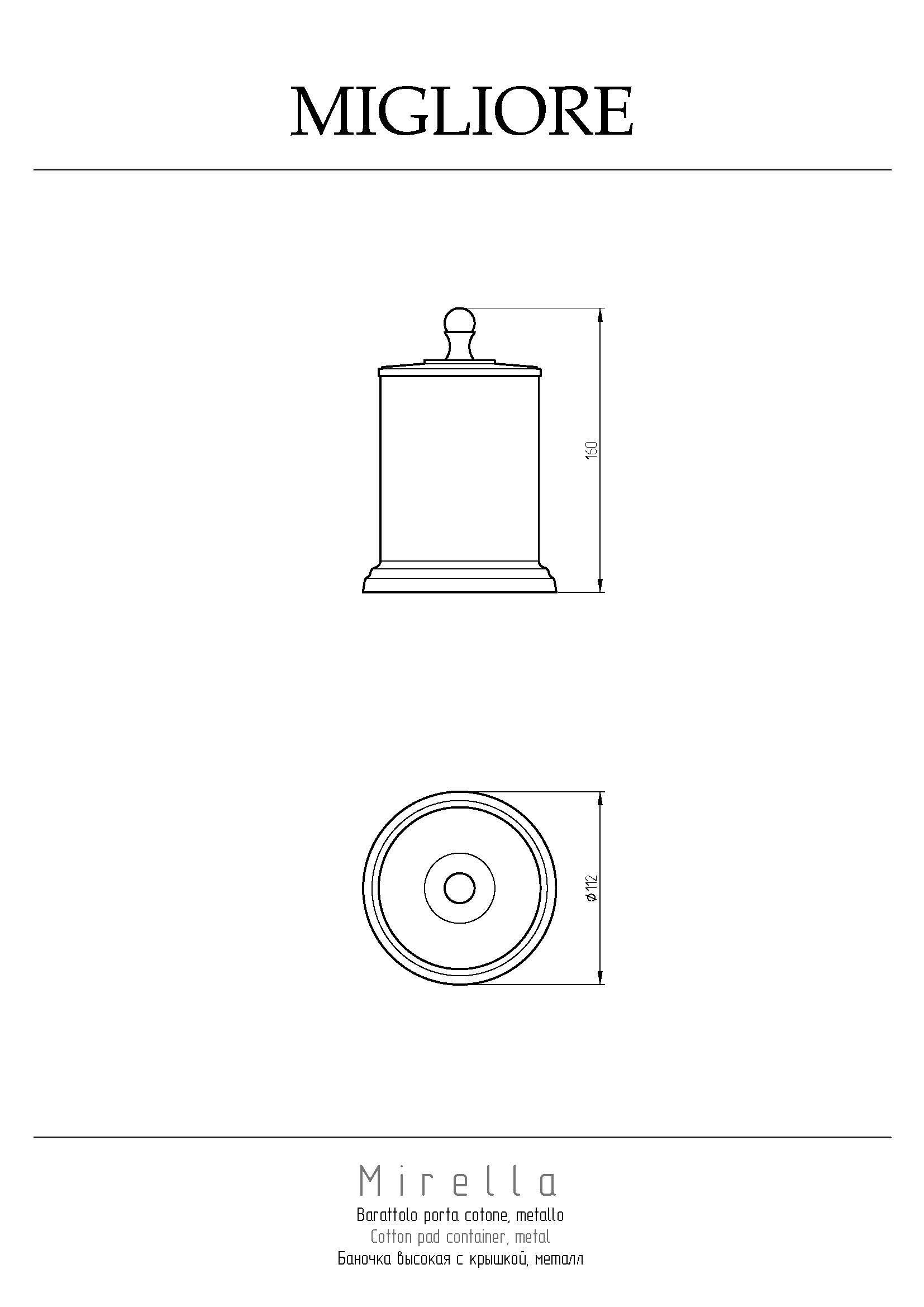 Баночка настольная серии MIRELLA бренда MIGLIORE предназначена для хранения ватных дисков или любых других предметов, и ее можно использовать не только в ванной комнате. Изделие выполнено из высококачественной латуни и имеет гальваническое покрытие золотом 24 карата. Внимание: золотое покрытие очень деликатное и для ухода рекомендуется использовать чистящее средство бренда MIGLIORE для смесителей и аксессуаров с деликатными покрытиями бронза, золото, медь и протирать мягкой ветошью.