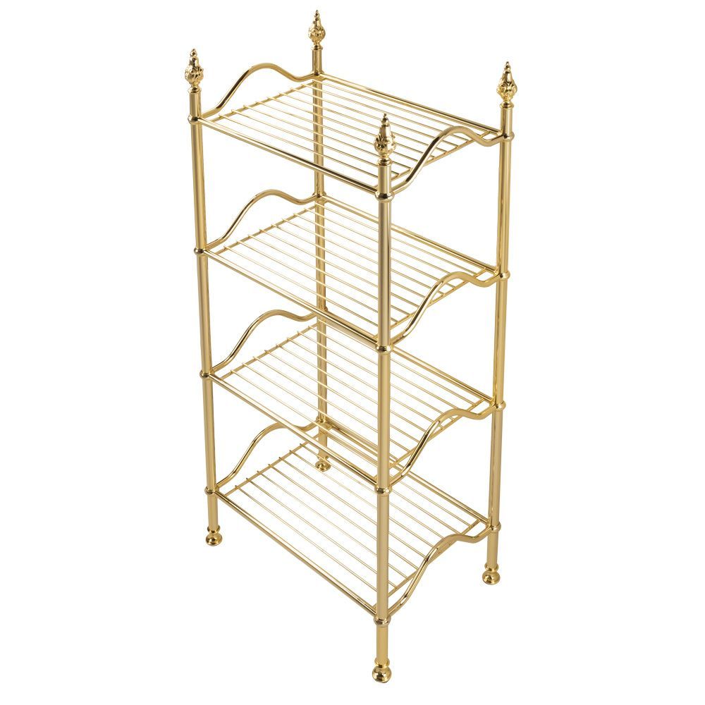 Этажерка серии MIRELLA бренда MIGLIORE- это красивый и многофункциональный предмет, который вы можете использовать как в ванной комнате, так и в любом другом помещении. Изделие выполнено из высококачественной латуни и имеет гальваническое покрытие золотом 24 карата. Внимание: золотое покрытие очень деликатное и для ухода рекомендуется использовать чистящее средство бренда MIGLIORE для смесителей и аксессуаров с деликатными покрытиями бронза, золото, медь и протирать мягкой ветошью.