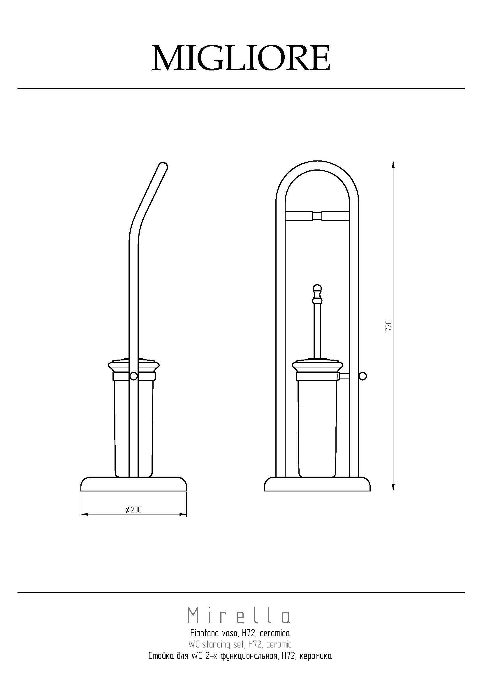 Стойка для унитаза серии MIRELLA бренда MIGLIORE - это многофункциональный аксессуар для ванной комнаты. На стойке расположены бумагодержатель и керамический ерш, который легко мыть. Изделие выполнено из высококачественной латуни и имеет гальваническое покрытие золотом 24 карата. Внимание: золотое покрытие очень деликатное и для ухода рекомендуется использовать чистящее средство бренда MIGLIORE для смесителей и аксессуаров с деликатными покрытиями бронза, золото, медь и протирать мягкой ветошью.