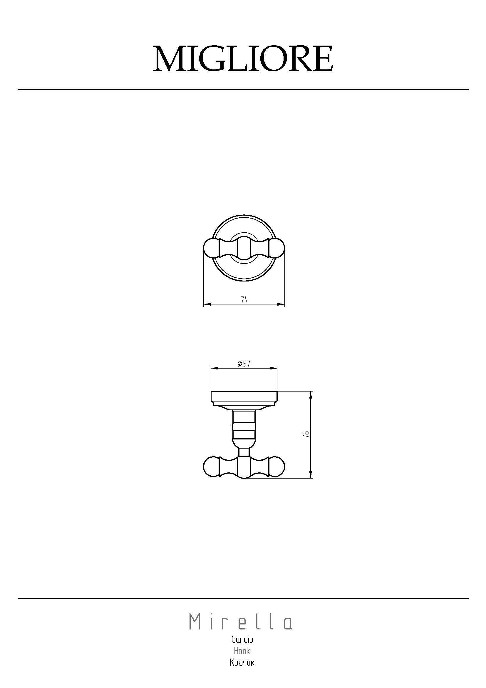 Крючок коллекции MIRELLA бренда MIGLIORE - это незаменимый аксессуар для ванной комнаты в роскошном стиле. Вы можете использовать данный крючок также и в интерьере кухни или других комнат. Изделие выполнено из латуни и имеет высококачественное покрытие, которое при правильном уходе надолго сохранит свой блеск.