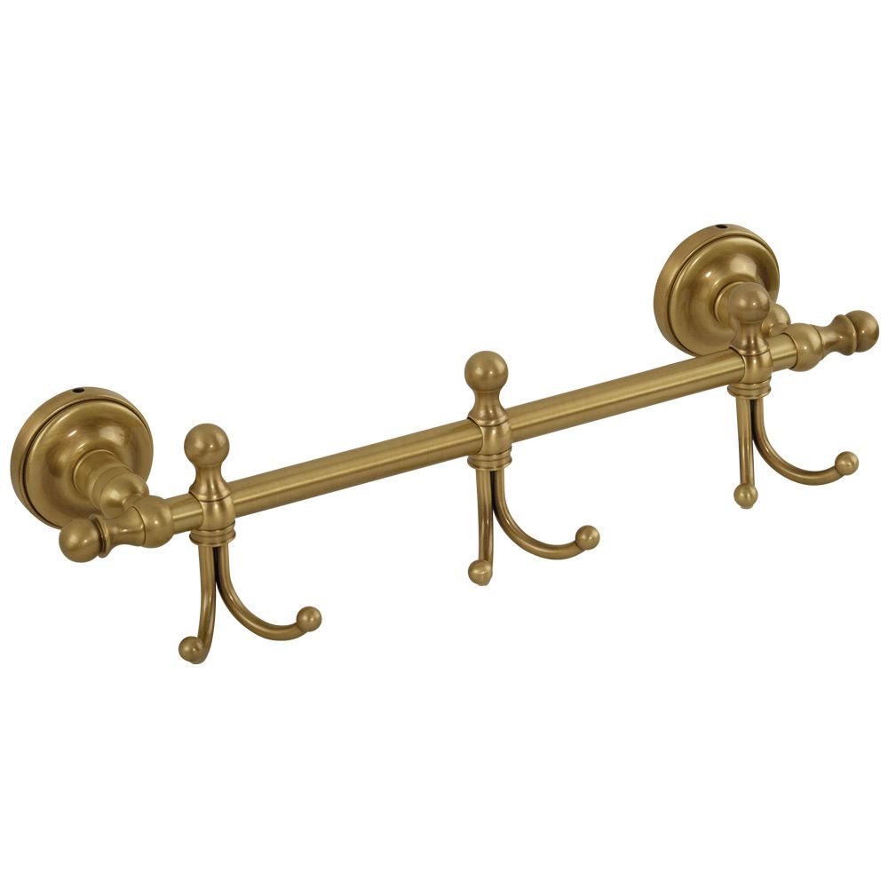 Планка с 3-мя крючками серии MIRELLA бренда MIGLIORE — многофункциональный аксессуар, который можно использовать в ванной комнате, в сауне, на кухне, в коридоре, кладовке. Общая длина составляет 36 см, 3 крючка классической формы расположены на достаточном удалении друг от друга, что позволит удобно разместить любые вещи и большие полотенца. Материал — латунь, покрытие цвета бронза. Внимание: бронзовое покрытие достаточно деликатное и для ухода рекомендуется протирать изделие мягкой безворсовой тряпочкой с мыльным раствором и вытирать насухо или использовать чистящее средство бренда MIGLIORE для смесителей и аксессуаров с деликатными покрытиями бронза, золото, медь.