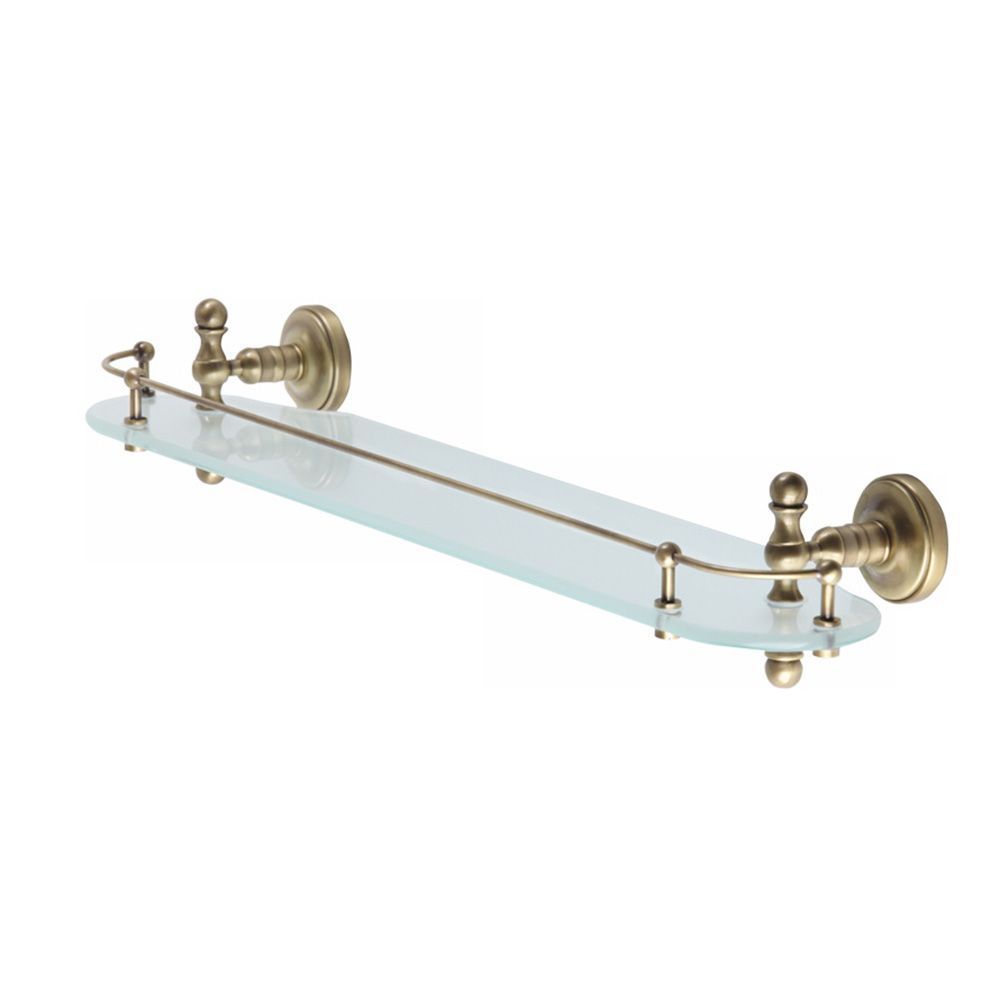 Полка с галереей серии MIRELLA бренда MIGLIORE длиной 50 см — это функциональный аксессуар для ванной комнаты в классическом стиле. Полка вешается над раковиной. На ней вы сможете разместить все необходимые косметические средства, которые будут всегда у вас под рукой. Ограничитель по переднему краю полки не позволит упасть тюбикам и предметам. Стекло легко чистится тряпочкой и/или средством для чистки стекол. Материал — латунь, покрытие цвета бронза. Внимание: бронзовое покрытие достаточно деликатное и для ухода рекомендуется протирать изделие мягкой безворсовой тряпочкой с мыльным раствором и вытирать насухо или использовать чистящее средство бренда MIGLIORE для смесителей и аксессуаров с деликатными покрытиями бронза, золото, медь.