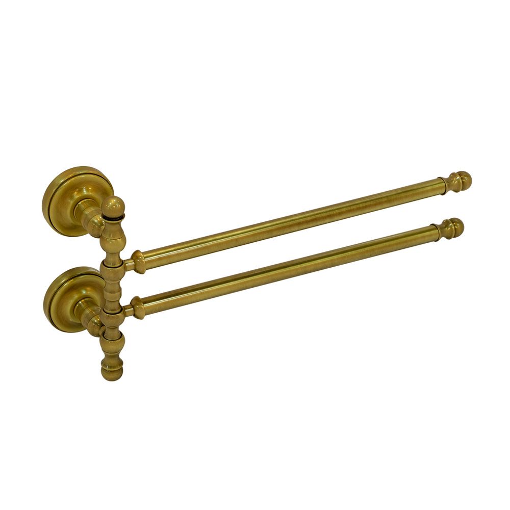 Полотенцедержатель двойной поворотный серии MIRELLA бренда MIGLIORE длиной 34 см очень удобен в использовании. Для него достаточно небольшого пространства, и вы можете развернуть его держатели в одну или другую сторону, в зависимости от места на стене. Материал — латунь, покрытие цвета бронза. Внимание: бронзовое покрытие достаточно деликатное и для ухода рекомендуется протирать изделие мягкой безворсовой тряпочкой с мыльным раствором и вытирать насухо или использовать чистящее средство бренда MIGLIORE для смесителей и аксессуаров с деликатными покрытиями бронза, золото, медь.