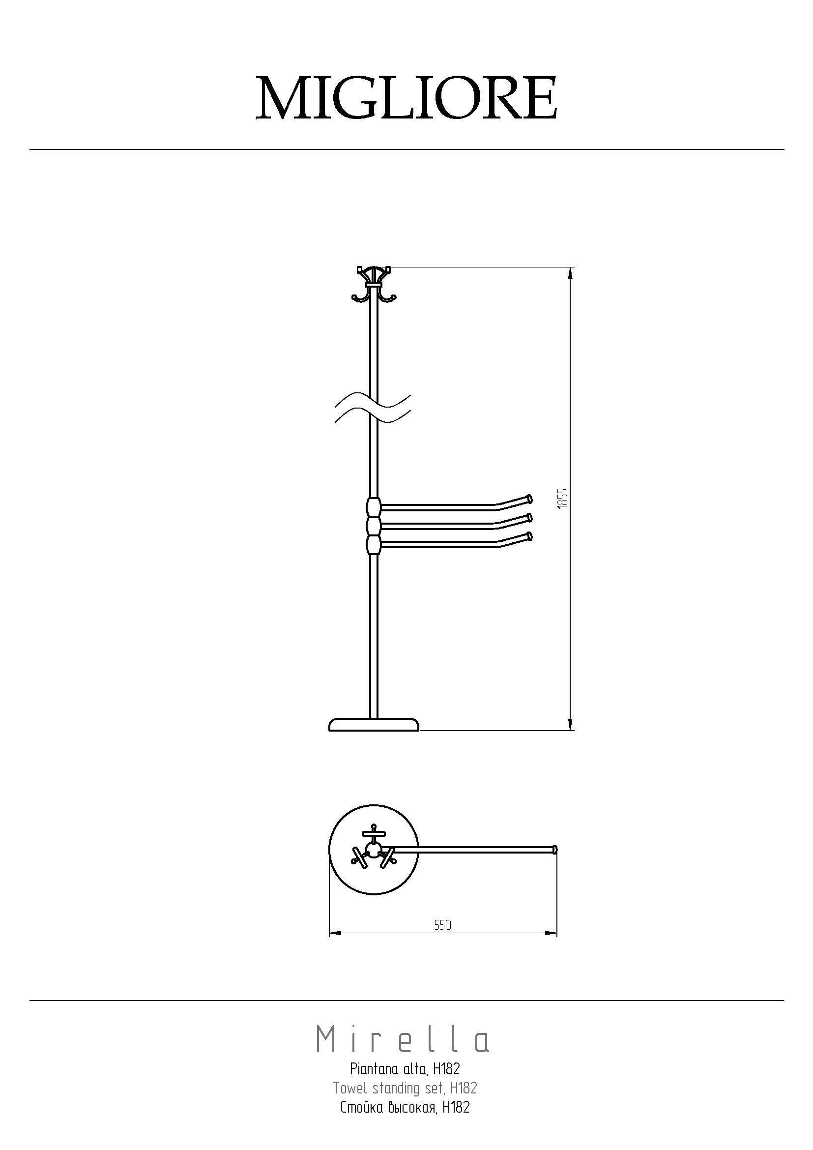 Стойка высокая серии MIRELLA бренда MIGLIORE - это многофункциональный аксессуар для ванной комнаты. На стойке сверху расположены три крючка для халатов и полотенец. Посередине стойки расположены три поворотных перекладины для полотенец для рук. Материал — латунь, покрытие цвета бронза. Внимание: бронзовое покрытие достаточно деликатное и для ухода рекомендуется протирать изделие мягкой безворсовой тряпочкой с мыльным раствором и вытирать насухо или использовать чистящее средство бренда MIGLIORE для смесителей и аксессуаров с деликатными покрытиями бронза, золото, медь.