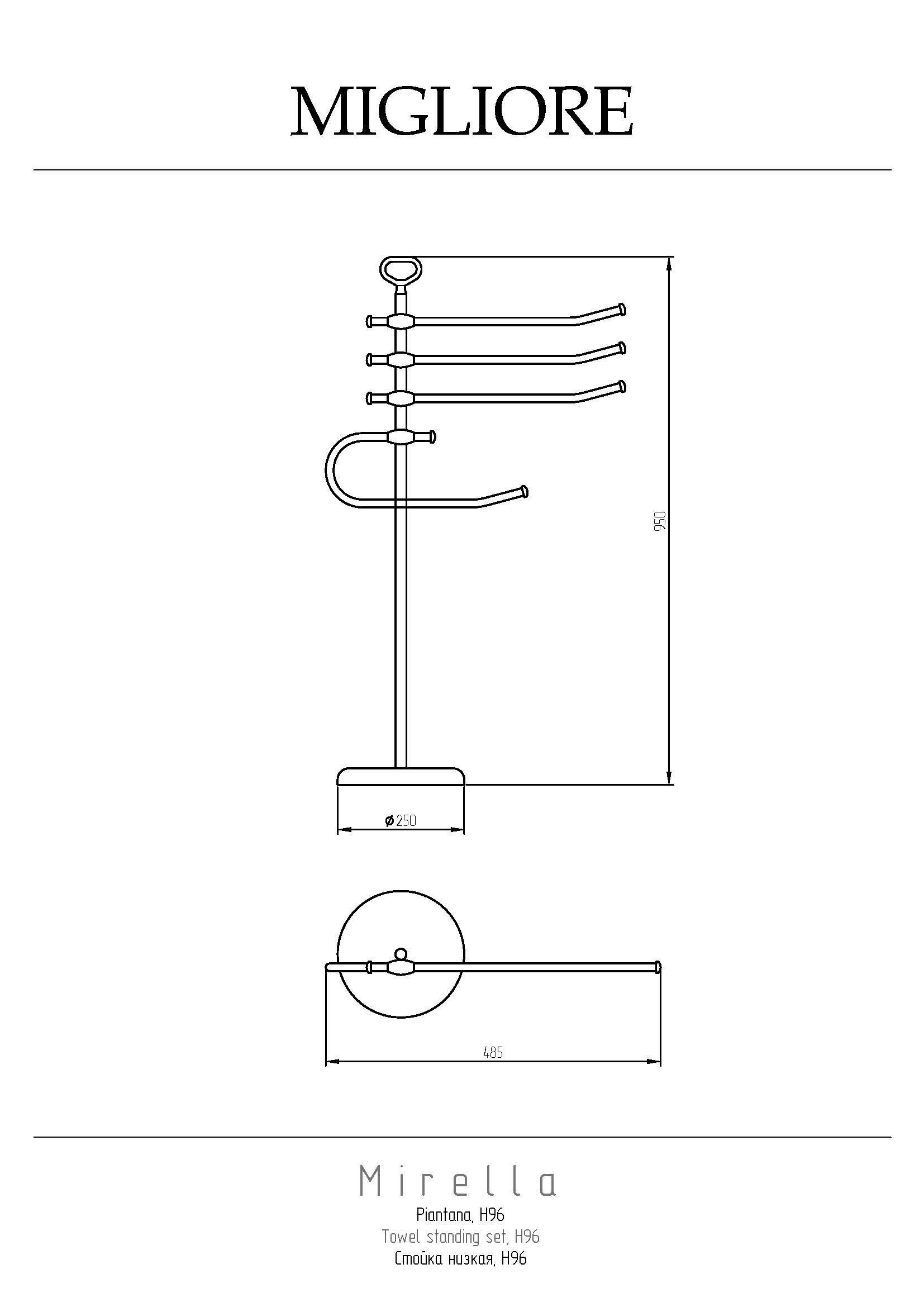 Низкая стойка серии MIRELLA бренда MIGLIORE имеет небольшую высоту и будет очень удобна рядом с раковиной или биде, поскольку на не можно повесить сразу несколько небольших полотенец. Изделие выполнено из высококачественной латуни и имеет гальваническое покрытие золотом 24 карата. Внимание: золотое покрытие очень деликатное и для ухода рекомендуется использовать чистящее средство бренда MIGLIORE для смесителей и аксессуаров с деликатными покрытиями бронза, золото, медь и протирать мягкой ветошью.