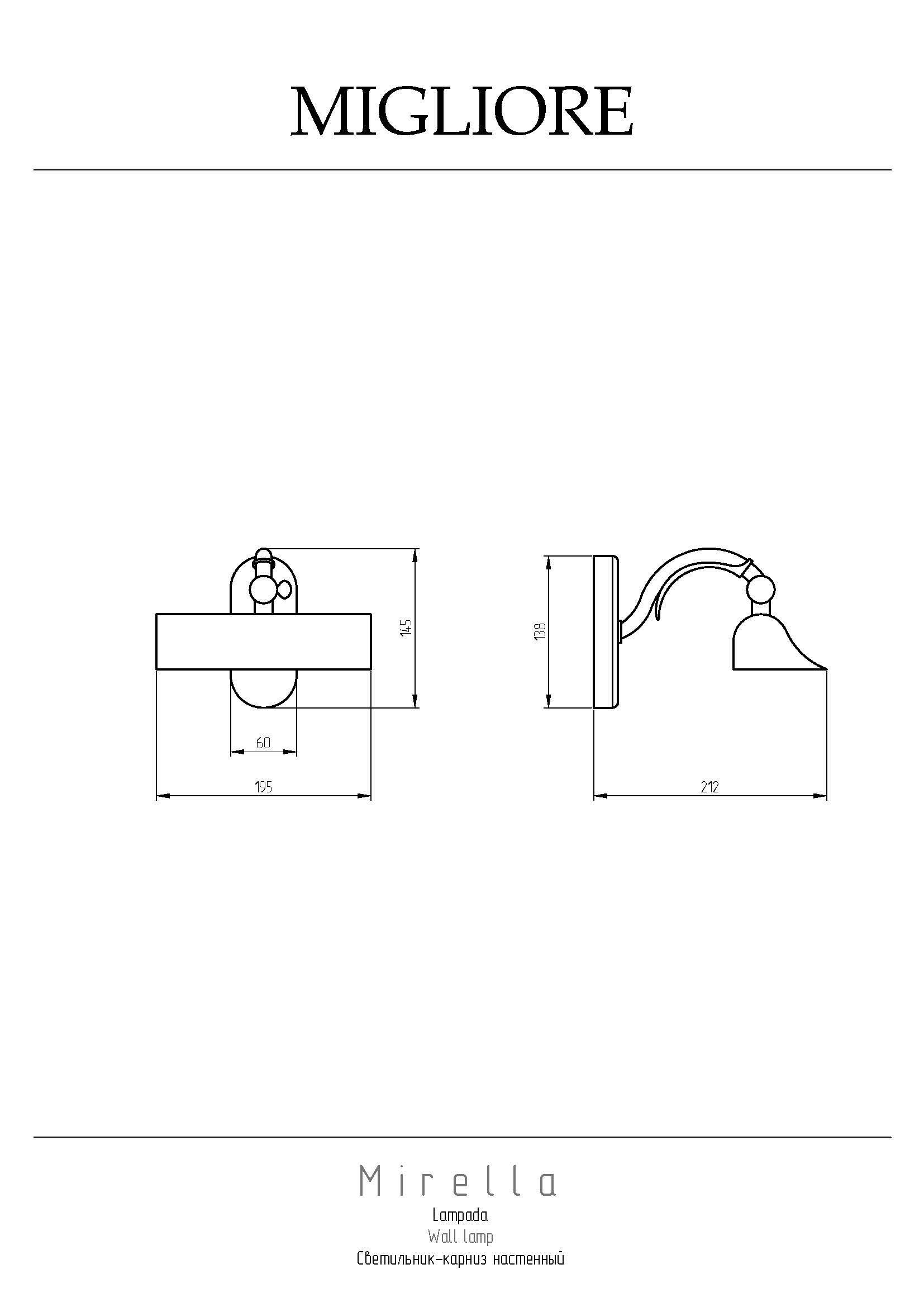 Светильник настенный серии MIRELLA бренда MIGLIORE - это красивый светильник в классическом стиле, который можно повесить как в ванной комнате, так и в другом помещении. Материал — латунь, покрытие цвета бронза. Внимание: бронзовое покрытие достаточно деликатное и для ухода рекомендуется протирать изделие мягкой безворсовой тряпочкой с мыльным раствором и вытирать насухо или использовать чистящее средство бренда MIGLIORE для смесителей и аксессуаров с деликатными покрытиями бронза, золото, медь.