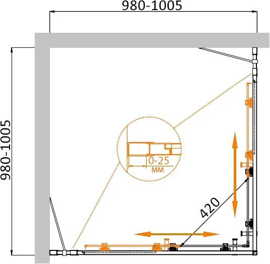 Монтаж: пристенный в угол