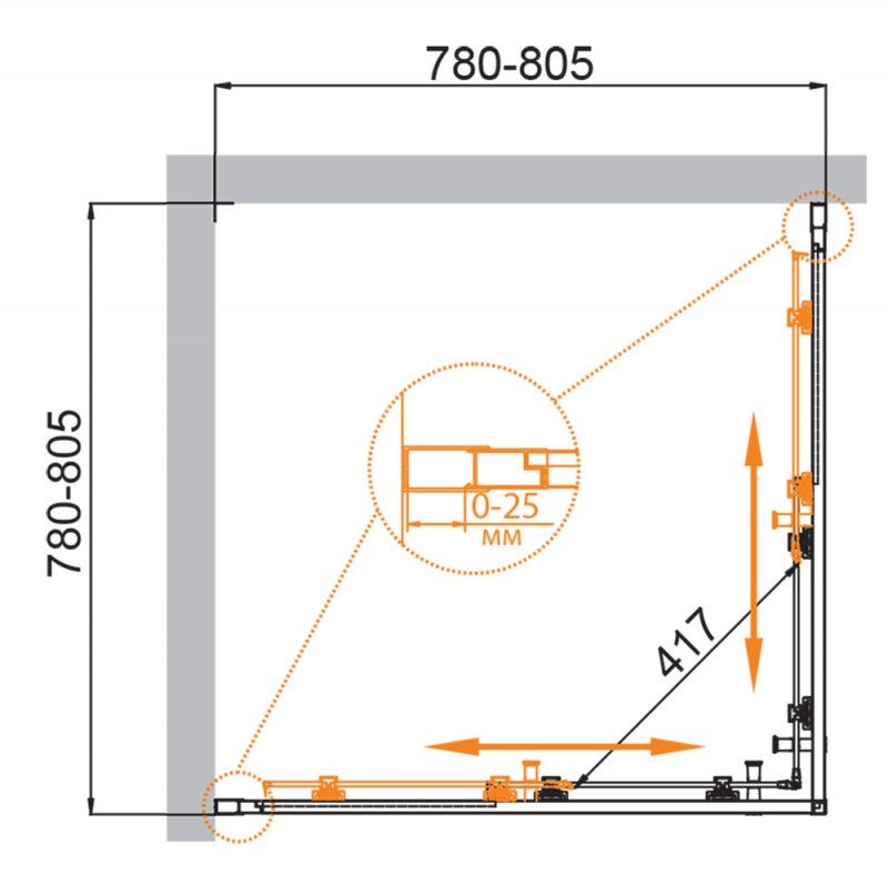 Регулировка ширины: предусмотрена за счет боковых профилей