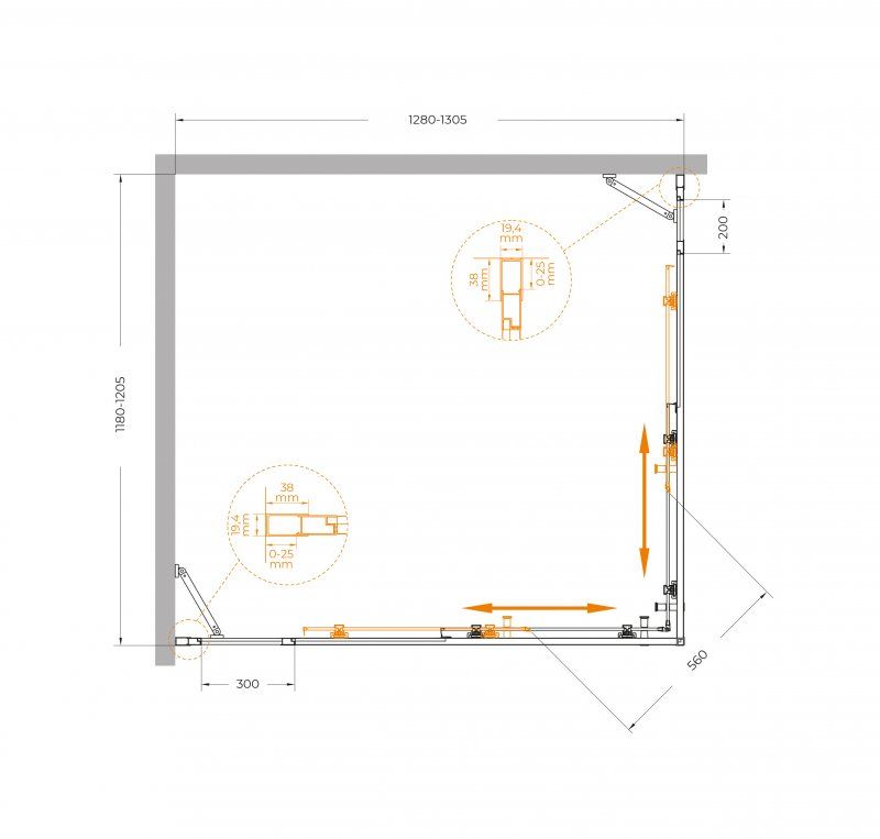 Регулировка ширины: предусмотрена за счет боковых профилей