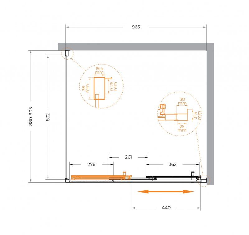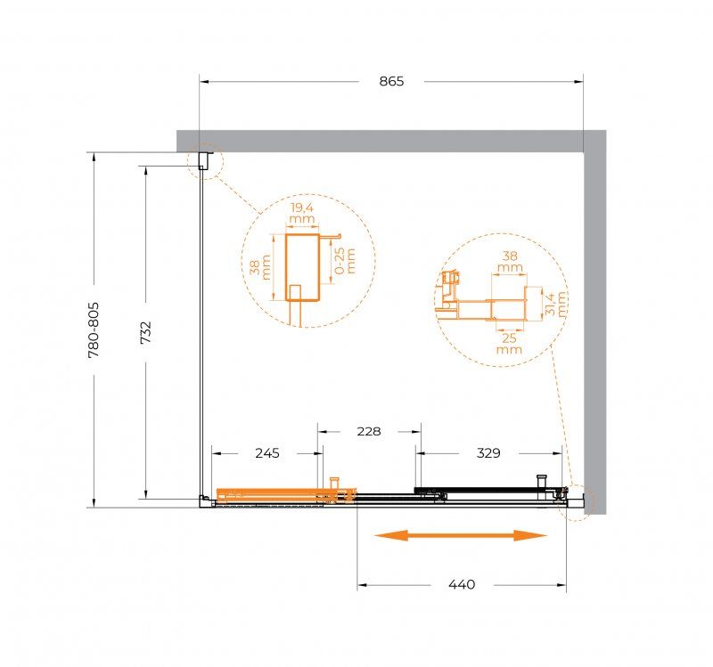 Регулировка ширины: предусмотрена за счет боковых профилей