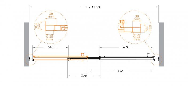 Регулировка ширины: предусмотрена за счет боковых профилей